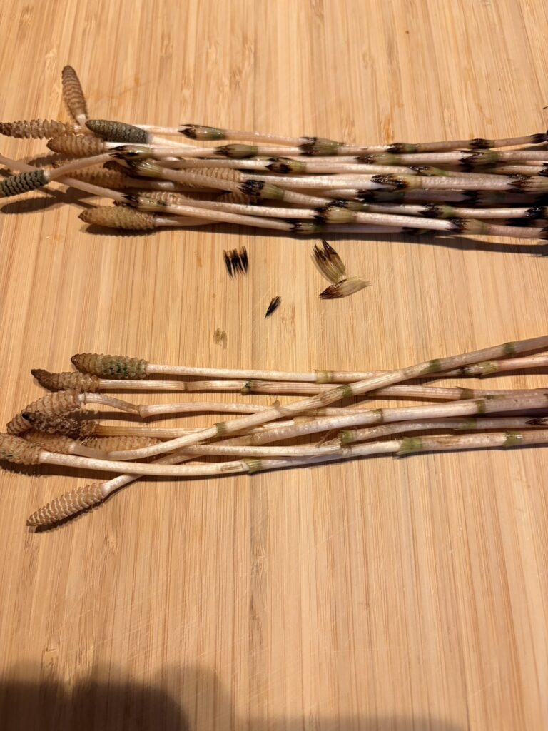 つくしは春になると芽を出すスギナの若い芽で、日本では古くから山菜として食べられています。 一般的に「はかま」と呼ばれる部分(節の周りの茶色い部分)を取り除き、軽く茹でてあく抜きをしてから調理します。 炒め物、煮物、和え物などに使われることが多く、ほのかな苦みと風味が春を感じさせます。