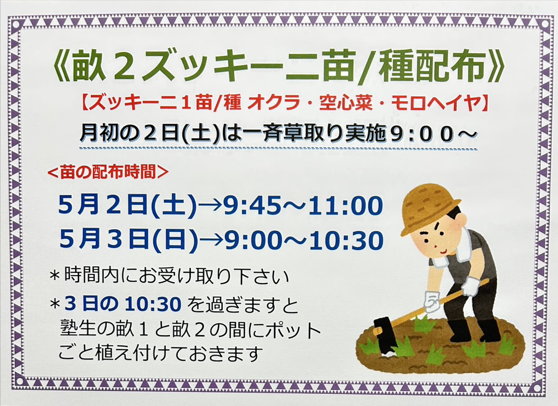 3日の10:30を過ぎますと塾生の畝1と畝2の間にポットごと植え付けておきます