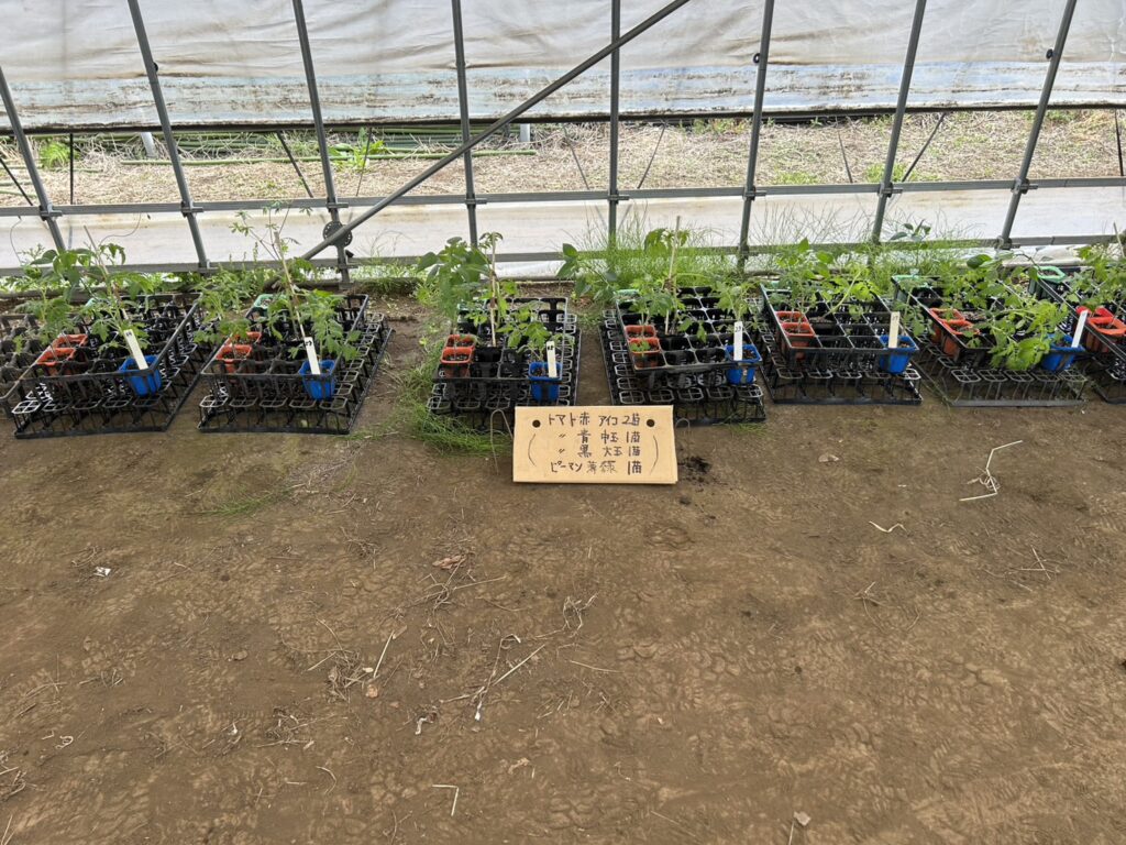 トマト苗・ピーマン苗はハウス内に保管しています。