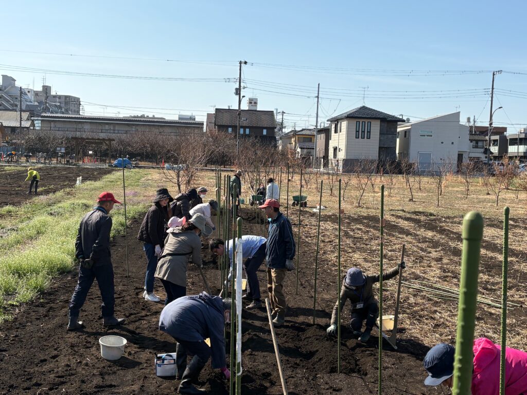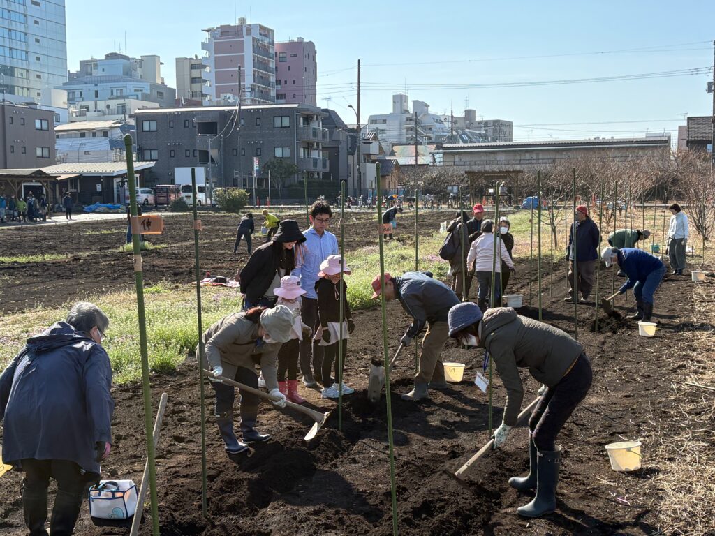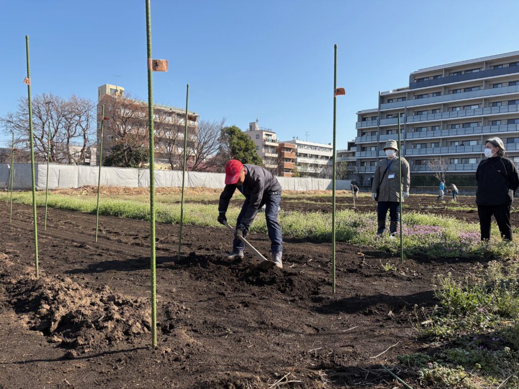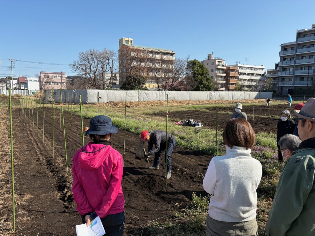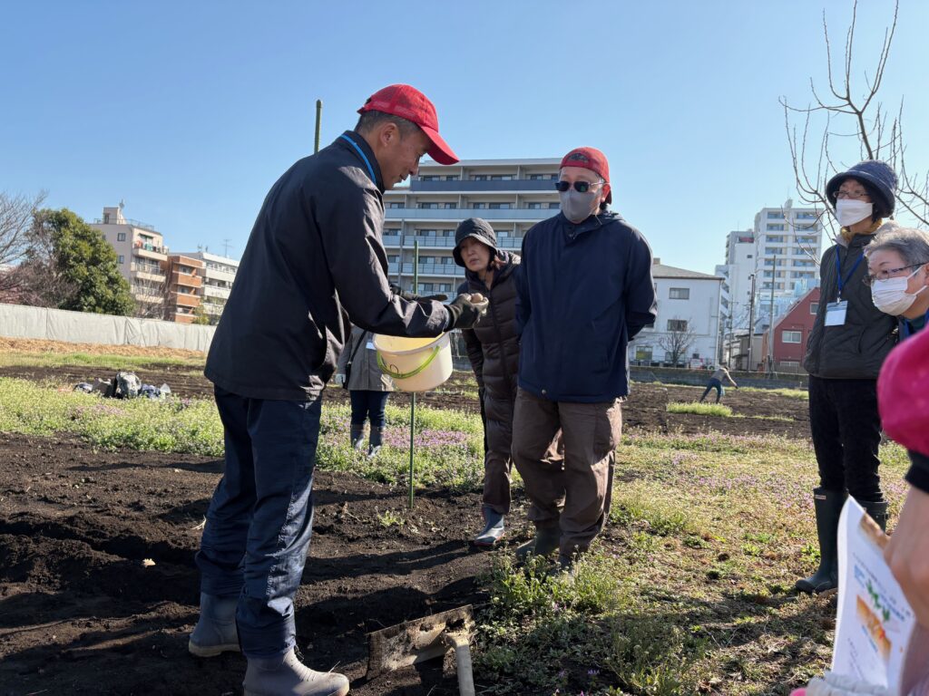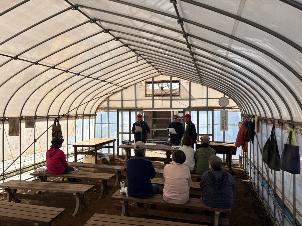 「共同区画用ジャガイモ」ハウス内の白バケツに準備しました。
